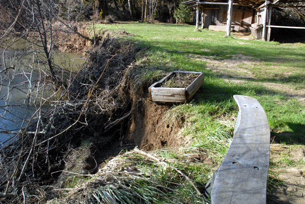 At Archaeology Park, erosion undercuts a flower box and threatens a bench. (Feb. 2, 2012)
