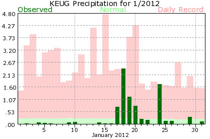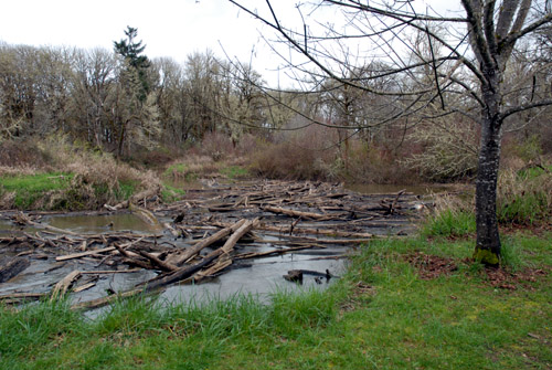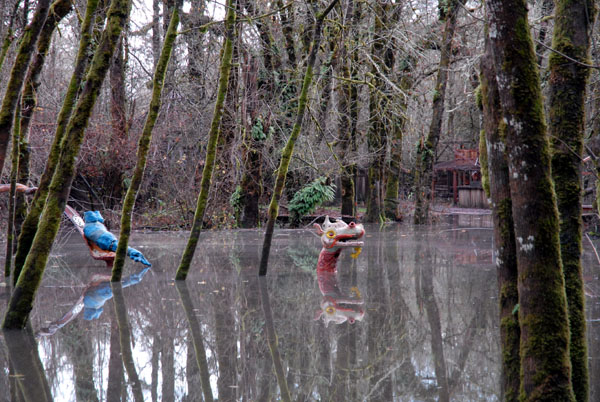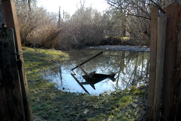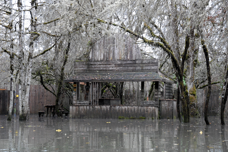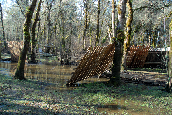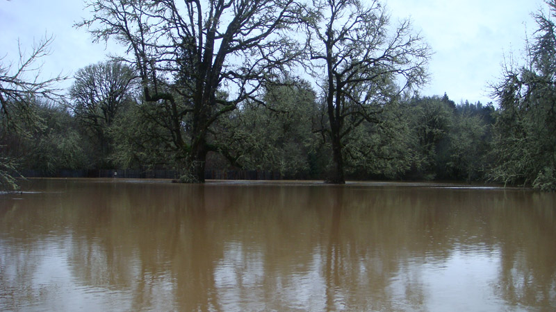 On January 18, 2012, 2.39 inches of rain fell in Eugene, setting a record for the date. The Long Tom River rose rapidly, flooding the OCF site for several days.