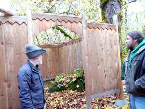Photos 23, 24: A path was suggested from the Community Village Tipi site to E. 13 th behind the booth occupied by the artist Newman (different Newman than the maskmaker). This would be next to existing smoking area park.